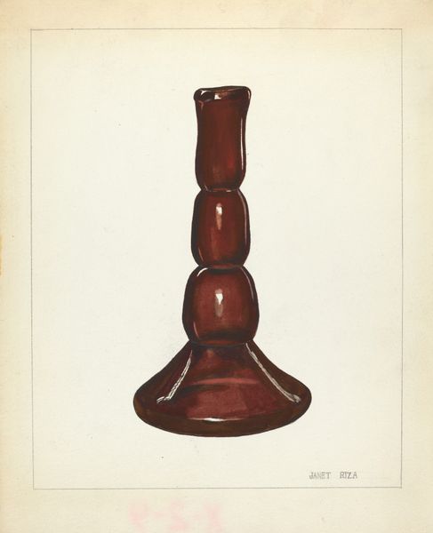 Clyde L. Cheney made this "Crockery Flower Vase" using what looks like watercolor or gouache, and you can really see his hand in the making of it. I love how he’s built up the form with these tiny, almost granular marks, like he's trying to capture not just the shape, but the very essence of the clay. There's a real tension between the smoothness of the vase's form and the rough, textured surface. Look at the rim, where the paint is darker and thicker, giving it a weight and presence that feels almost sculptural. It reminds me of Morandi's still lifes, where everyday objects become these monumental, meditative forms through careful observation and subtle shifts in tone and color. Ultimately, it's about how Cheney sees this vase, how he translates a three-dimensional object into a two-dimensional space, and how we, in turn, experience it through his eyes.