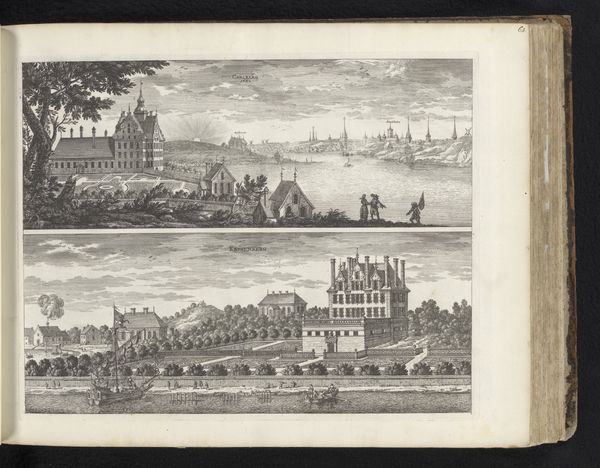 This print showing Alvastra monastery and Bråborg estate was made by Willem Swidde around the late 17th century, using engraving techniques. The stark monochrome aesthetic is inherent to the process. Engraving, a printmaking technique, involves cutting lines into a metal plate, applying ink, and pressing paper against the plate to transfer the image. The crisp, precise lines of the buildings and landscapes are a testament to Swidde's skill with the burin, the tool used for cutting. The image isn't just a depiction of buildings; it's an insight into the social hierarchy of the time. The ruined monastery, once a symbol of religious authority, is contrasted with the imposing estate of Bråborg, representing the rising power of the aristocracy. The print itself, made through a laborious process, would have been a commodity, circulated among the privileged classes, reinforcing their worldview. By focusing on the materials, making, and context, we begin to see how prints like this served as both art and social commentary, blurring the boundaries between craft and fine art.