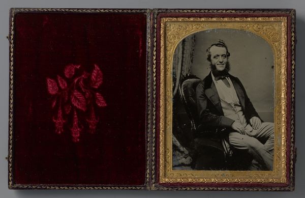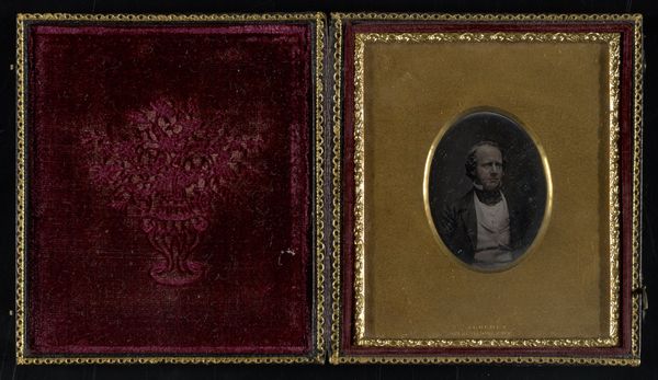 This portrait of a seated gentleman was created by Jeremiah Gurney, a prominent New York photographer, using the daguerreotype process. A daguerreotype is created on a silvered copper plate, polished to a mirror finish, then chemically treated to make it light-sensitive. After a lengthy exposure in the camera, the image is developed with mercury vapor, fixed, and sealed behind glass. The final product is a unique, highly detailed, and fragile image that is also laterally reversed, like looking into a mirror. The daguerreotype was revolutionary, democratizing portraiture. Though initially expensive, it soon became accessible to the middle class. Gurney’s meticulous approach and artistic skill elevated photography to an art form, even as it served the growing market for personal mementos. The sitter's carefully chosen attire speaks to the rising culture of consumerism, as people sought to project a certain status through their appearance. Looking at the details of this daguerreotype, we can see the convergence of science, art, and commerce that defined the era, blurring the lines between fine art and craft.