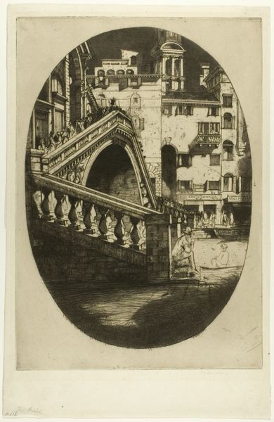 Editor: This is "Trafalgar Tavern, Greenwich," an etching by James Tissot, from 1878. It’s striking how Tissot juxtaposes this elegantly set table with the more rugged scene outside. What catches your eye about it? Curator: Well, as a materialist, I immediately think about the etching process itself. Consider the labor involved: the meticulous work of the artist, the specialized skills of the printer. Etching allowed for relatively inexpensive reproduction, making scenes of leisure available for wider consumption. Does the rise of the middle class in Victorian England influence what Tissot chooses to depict? Editor: That's a great point! I hadn’t considered the broader implications of etching as a reproducible medium. You are asking if the new technologies democratized art? Curator: Precisely! Look at the setting – a tavern. It suggests a public space of consumption, not just for the elite. But what about the implied labor beyond the artist? The waiters, the brewers… how does the image hint at this complex social fabric? Editor: It’s subtle. The presence of the table setting signifies it and implies labour behind the scenes. Is it possible to think that the rise of industry changed people's leisure expectations, allowing people to eat in such places more easily? Curator: Exactly! Mass production and shifts in social class all impact artistic choices. How did they shape Tissot’s creation and our engagement with it? Editor: Seeing the art in the real-world systems is fascinating. This definitely changes how I look at not just this print, but prints in general. Curator: I’m glad it resonated. Material realities are foundational to understanding art.