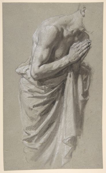 Franz August Myldorfer rendered this sheet with charcoal in 1754, depicting a standing male nude. Note the figure’s stance; his arms crossed tightly over his chest. This gesture, often seen throughout art history, can convey a sense of defensiveness, contemplation, or even concealed vulnerability. Consider the Venus Pudica, where the goddess modestly covers herself; a similar gesture imbued with different intent. The protective stance, while simple, resonates deeply. It speaks to our shared human experiences of self-awareness and the instinct to shield ourselves. Think of how this motif echoes in Renaissance paintings, where saints and biblical figures adopt similar poses to communicate introspection and a grappling with inner turmoil. It is a visual echo, resurfacing, evolving, and carrying different emotional weight across time.