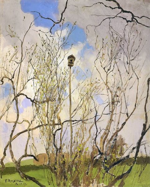 Richard Friese made this painting, Waldlandschaft, with oil paint, and it’s a really nice example of how simplicity can be so affecting. The artist takes a simple muted palette and some very loose, almost scribbled marks, and builds an entire landscape. The paint looks thin, like it’s been brushed on in layers, and it gives a real sense of depth to the piece. There are these subtle touches of green and gold in the foreground, which really pop against the brown of the trees. Look at the mark-making in the grassy area at the base of the work, there is a kind of rhythmic quality, with a sense of movement that makes the whole thing feel so alive. I can see the influence of the Barbizon school, they really liked to make landscapes like this, but there’s also something unique, the way Friese handles the paint, it feels contemporary. Art’s all about these echoes, these conversations across time, isn’t it?