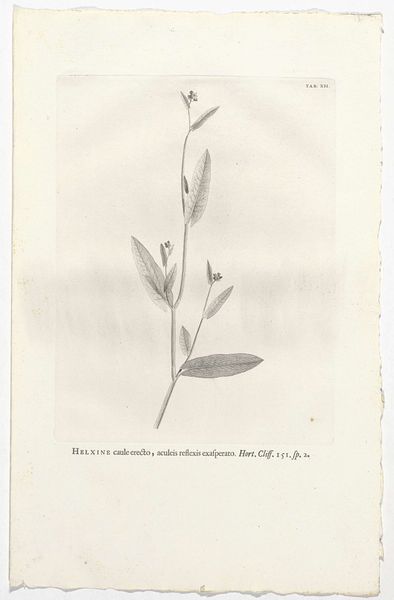 Jan Wandelaar created this botanical print of a Cliffortia polygonifolia in the 18th century, a period marked by the Enlightenment's scientific pursuits and colonial expansions. The image reflects the intersections of science, commerce, and colonialism. Botanical illustrations like this one were vital tools for cataloging and understanding the natural resources of newly "discovered" lands, often at the expense of indigenous knowledge and sovereignty. Wandelaar's precise rendering of the plant speaks to the scientific gaze, meticulously documenting nature for European audiences. The term "Femina" in the inscription highlights the gendered dimensions of scientific inquiry, where the natural world was often feminized and subjected to male observation and control. Consider how this print embodies the power dynamics inherent in the act of naming and classifying nature, and who benefits from such knowledge. Reflect on the beauty and complexity captured in this image.