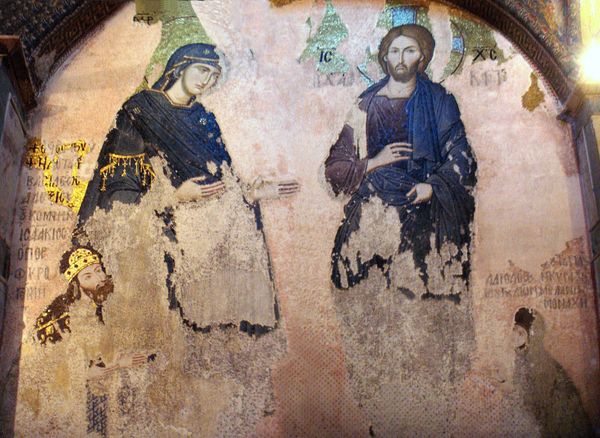 These Byzantine mosaics, found within Istanbul's Fethiye Mosque, once the Pammakaristos Church, present a rich array of symbols that echo through time. Here, we see holy figures, their heads encircled by halos, emblems of divine light and sanctity. These aren't mere portraits; they're conduits to a deeper spiritual narrative, reflecting the Byzantine world’s intricate dance between the earthly and the divine. Note how one figure carries a scroll. This symbol harkens back to ancient Greece, where scrolls signified knowledge and authority. Yet, in this Christian context, it transforms, representing sacred scripture and divine revelation. We see echoes of this motif in medieval depictions of prophets, each bearing scrolls, linking them across centuries. Observe the raised hand of one of the figures—a gesture of blessing or instruction. It appears in Roman oratory, conveying power and influence. This gesture, passed down through history, resurfaces here with new meaning, highlighting the non-linear progression of symbols, how they evolve, resurface, and take on new meanings in different contexts. The mosaic captures our collective memory and subconscious— a spiritual echo resonating through art.