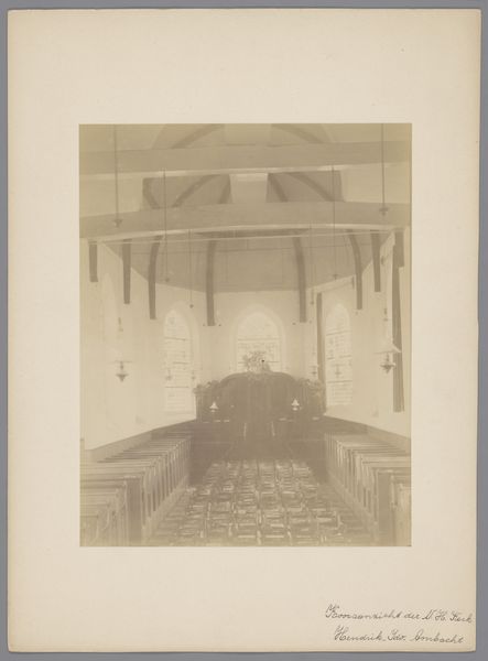Editor: Here we have Étienne Neurdein’s photograph, “Interior of the Great Mosque of Tlemcen,” taken sometime between 1880 and 1900. It's fascinating to see the intricate details captured in this old photograph. How would you interpret this work, particularly within its historical context? Curator: This photograph operates within the complicated sphere of Orientalism. Neurdein, a European photographer, captures a vision of the 'Orient' – North Africa in this case – for a European audience. How do you think that shapes the image itself? Editor: It definitely feels like it’s presenting a romanticized view, focusing on the aesthetic and architectural details but maybe missing the social complexities of the time. Curator: Exactly. It’s important to ask: Who is being represented, and for whom? These images helped to solidify European perceptions and, at times, misperceptions about the cultures they depicted. We also need to think about how power dynamics shaped these representations, particularly colonial power. This photograph isn’t simply a neutral document; it's a construction of the 'Other.' Does this make you question photography's ability to represent truthfully? Editor: It does. It makes me think about whose gaze is behind the camera and how that impacts what's being shown, and not shown. I now see it as a historical document and a product of its time, showing a specific point of view more than objective truth. Curator: Precisely. And that critical awareness is crucial when engaging with historical artworks and photographs like this.