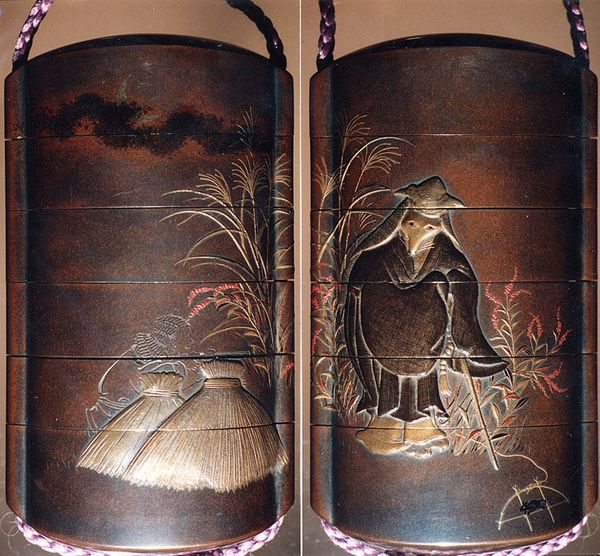This is an inrō case, made in Japan by the Kajikawa school, decorated with a scene of cherry-blossom viewing. The image offers us a window into the social customs of its time. The case depicts figures enjoying the fleeting beauty of cherry blossoms, a popular pastime in Japan. We see people of different social classes coming together. This speaks to the complex social dynamics of the time, where tradition and hierarchy met with opportunities for shared cultural experience. The inrō itself, as a functional object, tells a story about fashion, status, and the rituals of daily life. To fully understand this artwork, we can consult historical texts, examine similar objects, and research the Kajikawa school. This helps us to understand the meaning of art as something that is contingent on social and institutional context.