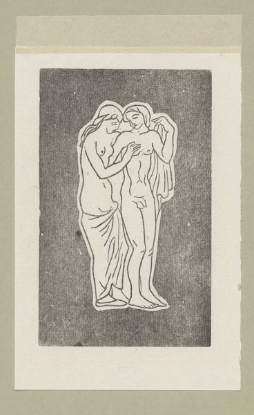 Curator: Aristide Maillol created this work, titled "Daphnis achtervolgt Chloë," in 1937. It’s currently held here at the Rijksmuseum. We believe it’s an ink on paper print. Editor: Wow, what strikes me first is its energy. The figures, outlined in bold ink, are caught in this perpetual motion of pursuit. You can almost feel the wind in their hair! Curator: It’s interesting that you highlight the feeling of motion. Viewing this piece through a feminist lens, one might ask what that pursuit signifies in the broader narratives of gender and power. How do we interpret this chase given historical and societal dynamics of the male gaze and female agency? Editor: That's a really important point. It makes you think, doesn't it? But looking at it, the artist is using a limited number of lines but still conveying such strength and softness. It reminds me a little of dance, that push and pull of attraction or resistance. Maybe the wind in their hair is really just them trying to catch each other, you know? Curator: Considering that it depicts a scene with Daphnis and Chloe—two figures from Greek pastoral romance—that “dance” or push-and-pull analogy feels very insightful. The work then prompts discussions about the romanticization of power imbalances throughout history. Does it echo the original narrative, or does Maillol’s particular artistic interpretation offer some nuanced reading? Editor: I get it. We can question, like, who is writing the story, right? But even with those heavier thoughts, this image kinda lets you drift away. It is about storytelling after all. A snapshot of longing. Curator: I concur. The work’s strength lies in its capability to spark conversations—intersecting aesthetics with ethics and individual interpretations within larger sociocultural landscapes. Editor: So well put! And for me, it’s a simple image of folks trying to get close in nature; reminds me to do the same sometimes!