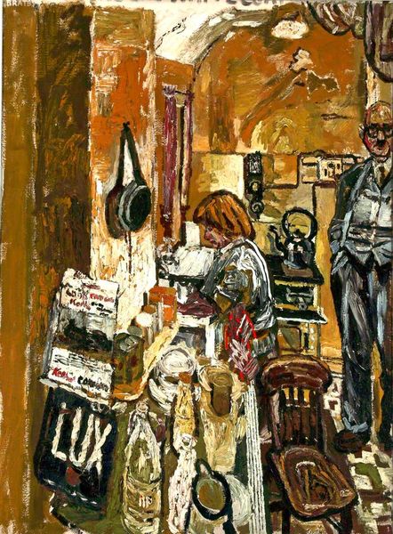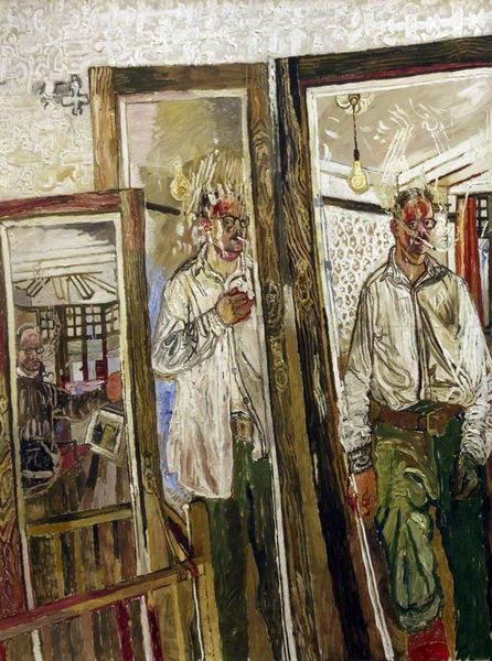 John Bratby created this oil painting, ‘The Artist Painting a Picture’, sometime in the mid-20th century. Its themes are rooted in the artistic and social landscape of post-war Britain. Bratby was associated with Kitchen Sink Realism, an art movement that challenged the established art world. It depicted everyday life in a raw, often unglamorous way, emphasizing the mundane experiences of working-class people. This movement reflected a broader shift in British society towards greater social realism and a questioning of traditional class structures. Bratby's painting reflects this ethos, featuring a cluttered domestic interior and ordinary figures. The artist himself is present, blurring the lines between the act of creation and the subject matter. It suggests a self-aware commentary on the role of the artist in society. Is the artist a detached observer, or an active participant in the world they depict? To fully understand this work, we need to consider the social and institutional contexts in which Bratby operated. Looking at the history of British art schools and the changing role of the artist in post-war society can give a deeper understanding of its meaning.