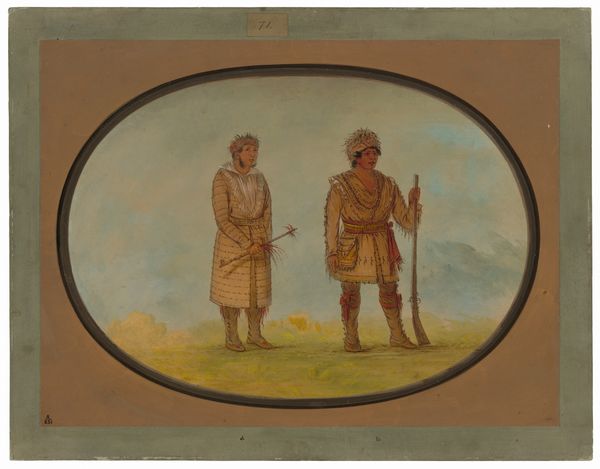 George Catlin made this painting, "Bride and Groom on Horseback - Connibo," with oil on cardboard, but when exactly? It's tough to say, as Catlin didn't always date his work. What we do know is that Catlin traveled through the American West in the 1830s, documenting the lives and customs of various Native American tribes. This image presents a posed representation of a wedding procession, a kind of "snapshot" of native life. While it aims for authenticity, we must question the politics of such imagery, especially considering the context of westward expansion and the displacement of native peoples. Catlin's work romanticizes Native American life, even as those lives were under threat. Understanding this artwork requires examining the social conditions of its time. Research into Catlin's journals, letters, and other historical documents can reveal his perspective, biases, and the broader cultural forces that shaped his work. The meaning of art is always contingent on its social and institutional context.