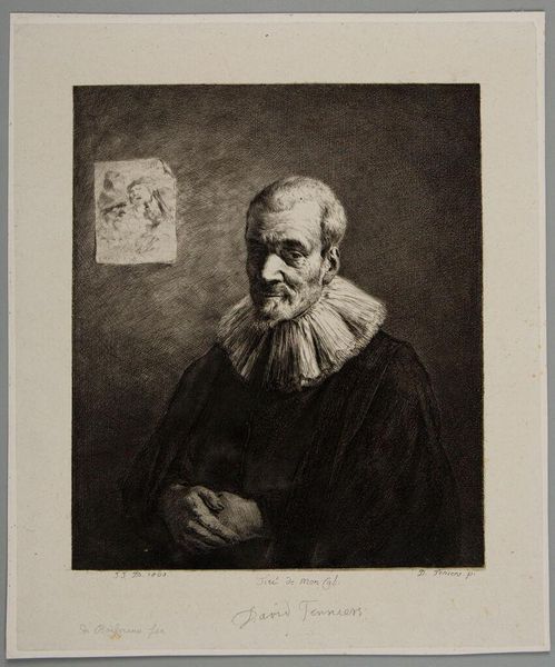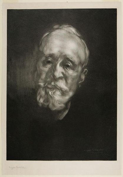 Curator: Sarah Gooll Putnam painted this portrait of Francis Boott; an evocative image rendered in oil on canvas. Editor: The immediate impression is one of intense contemplation, almost melancholy, wouldn't you agree? The somber tones amplify that sense. Curator: I'm drawn to the tactile nature of the paint itself, how Putnam's brushstrokes define the very texture of Boott's beard and the stark contrast against the background. The materiality speaks of labor and the deliberate act of creation. Editor: The beard, though, strikes me as symbolic, a visual representation of wisdom accumulated over time. Note how it draws the eye, anchoring the composition, imbuing the figure with gravitas. Curator: And that stark white collar! It signifies the professional class to which Boott belonged, and probably informs a certain expectation of the artist. It might even hint at Putnam's own positioning in relation to her subject. Editor: Yes, a potent symbol of status, subtly offset by the soft light on his brow, perhaps hinting at intellectual pursuits, the life of the mind? Curator: Thinking about the materials, I can't help wondering where Putnam sourced her pigments and canvas. These seemingly small details were so intertwined with trade networks and global economies. Editor: Ultimately, it's a study in the passage of time and the weight of experience, wouldn’t you say? Curator: Indeed. Thank you for your insights.