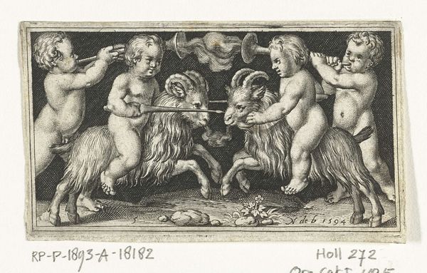 Nicolaes de Bruyn made this print of two angels with dogs sometime around 1594, using an engraving technique. The density of the engraved lines defines the forms of the chubby cherubs, the playful dogs, and even the insects flitting around them. The act of engraving – cutting lines into a metal plate, inking it, and then pressing it onto paper – is crucial to this image. It allows for incredible detail, and also for the production of multiple identical images. This reproductive capacity speaks volumes about the changing status of art at the time, and the rise of a market for images. The print wasn't just an aesthetic object, but a commodity. By focusing on the engraver's craft, we see how this small print participates in larger economies of labor, production and consumption, challenging distinctions between art and craft.