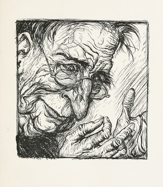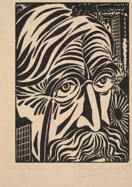 Editor: This is Harry Sternberg's self-portrait. It's a stark black and white print, very graphic. What stands out to me is the intensity of his gaze. How do you interpret that intensity, and the role of self-portraiture in an artist's career? Curator: Self-portraits are fascinating documents, aren't they? They're shaped by the artist's intention, but also by the prevailing social and artistic expectations of the time. Given Sternberg's background in social realism, this self-portrait could be viewed as a statement about the artist's role in reflecting or even challenging societal norms. What do you think? Editor: That makes sense. It also makes me wonder about the audience he envisioned for this piece. Curator: Precisely. And how the reception of such an image might shift over time, influenced by evolving political and cultural landscapes. Editor: I never thought about self-portraits that way. It's almost like the artist is performing a role for history. Curator: Exactly! Art exists in conversation with its context.