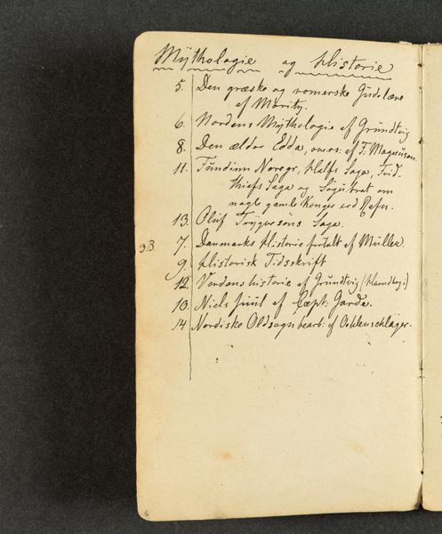 "Lærebøger" or "Textbooks" was made by Johan Thomas Lundbye in the early 19th century using paper and ink. The nature of paper as a ground for inscription is crucial here. The artist’s handwritten notes on these pages are filled with references to academic subjects, reflecting his intellectual interests and the education system of his time. The quality of the paper, its texture and weight, offer insight into the resources available to Lundbye and the culture of documentation in the 1800s. The use of ink, with its fluidity and permanence, speaks to the act of recording thoughts and knowledge. The creation of this notebook, filled with handwritten entries, underscores the labor involved in intellectual pursuits. It also shows how knowledge was personally curated and disseminated before mass printing became widespread. This emphasis on materiality, making, and context challenges the traditional art historical focus on the finished image. It invites us to consider the broader social and cultural implications of artistic creation.