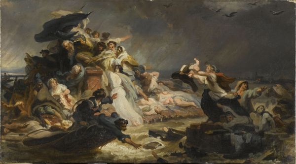 Honoré Daumier created this painting in France in the 19th century. The people depicted in the painting seem to be moving away from something as the city burns behind them. Daumier lived through years of political turmoil following the French Revolution, and he was concerned with the effects of this on the poor. In 1848, France saw a brief return to Republicanism. But by 1851, the Second Empire under Napoleon III seized power in a coup. “The Fugitives” could be seen as a commentary on the violence of those years. He renders the drama of the painting with gestural brushstrokes. The people are a mass of light and dark. The social role of art at this time was greatly debated. With the rise of industrialization, some artists wanted to show the lives of working people. Others wanted to withdraw from modern life altogether. More research into the newspapers and political pamphlets from that time would help us to more precisely understand the context for this work.