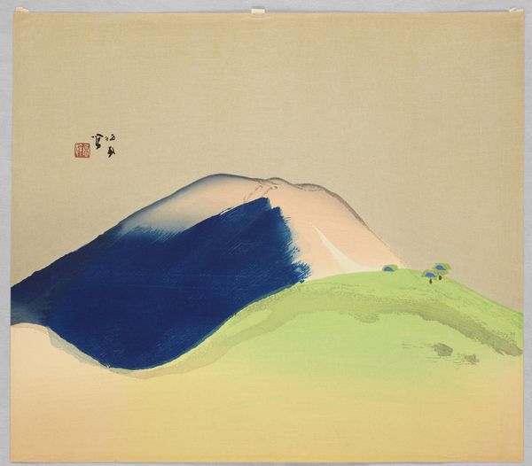 Utagawa Kuniyoshi created the woodblock print "Ochanomizu in the Rain" in the 19th century. The artwork's somber mood is immediately apparent, achieved through a limited palette of blues, grays, and blacks. The composition is structured around the dynamic flow of the river, a cascade of blue that cuts through the darker landscape. Vertical lines mimic the rain, creating a sense of depth and enclosure. Kuniyoshi masterfully uses the woodblock technique to suggest texture, from the soft rain to the solidity of the distant mountain. The river’s prominence subverts traditional landscape art. Kuniyoshi challenges the viewer's expectations by emphasizing the fluidity of water over solid, static forms. This reflects a broader interest in impermanence. The use of color and line in the image creates an immersive experience, pulling the viewer into the rain-soaked scene.