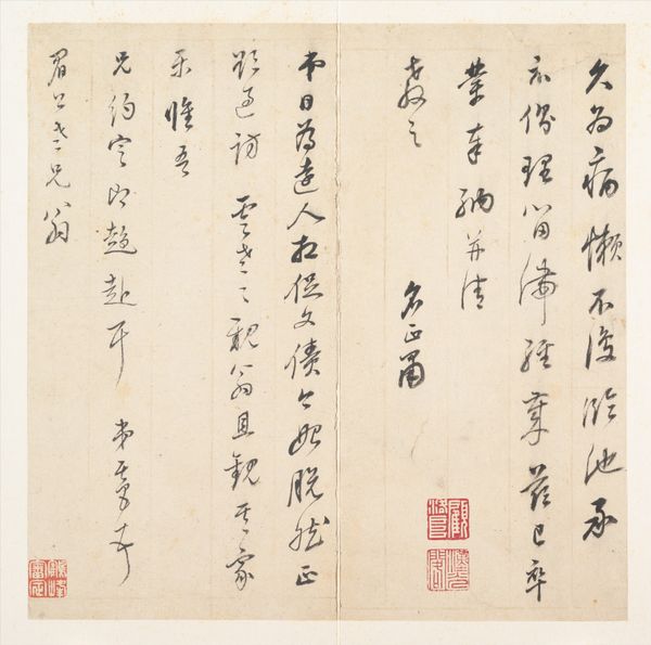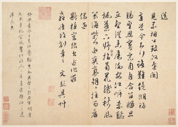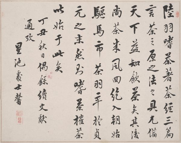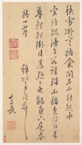 Curator: This print, "Notification of the witty poem contest at Iriya" by Ayaoka Yūshin, dated 1893…it almost feels like peeking at a secret society’s flyer. All that precise script layered with playful imagery – just look at that almost comical rendering of figures and objects scattered throughout! Editor: It’s incredible how much information they fit into one image! It feels busy, yet organized, you know? What's your interpretation of this work? Curator: It's a window into a vibrant literary subculture, those witty poem contests weren't just gatherings, they were sparks of creativity igniting under the umbrella of tradition. See the way Yūshin juxtaposes the formal announcements with almost whimsical illustrations? That’s not just decoration. It’s about the energy, the clash between the proper and the playful, that probably defined these events. Do you see any elements that stand out? Editor: That contrast between the formal text and almost cartoony visuals makes it accessible and also creates intrigue. What do you make of it overall? Curator: It's a bit like finding an old concert poster—but instead of rockstars, it's a gathering of literary enthusiasts vying for witty glory! I imagine this print pinned up, maybe on a gatepost or a teahouse wall, hinting at the lively exchange within, it has so much charm and intimacy that almost makes me feel like being present. Editor: This reminds us of art's diverse forms and social function within specific communities! The mix of text and image is fascinating, bridging formality and personality. Curator: Exactly. And thinking about the time this piece was created makes it even richer. A time capsule! It shows us that art isn't confined to a canvas or a gallery wall.