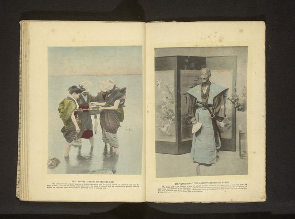 This is a page from an unknown book, featuring hand-colored photographs by an anonymous artist. The images are a combination of photography and the hand-application of color, adding to its visual appeal. The photograph features staged scenes, offering a glimpse into Japanese life and culture. What interests me most here is the interplay between industrial production and handcraft. Photography itself was, of course, a relatively new technology. As cameras became more readily available and affordable, a greater range of people could participate in photographic culture. Hand coloring was a way to counteract the sometimes distancing effect of photography, and it also adds another layer of labor. The careful crafting and staging of the images suggests a desire to document and preserve cultural traditions. It is a reminder of the enduring human connection to artistic practice, even in the face of rapid technological advancement.