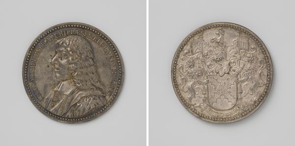 Arvid Karlsteen crafted this silver coin to commemorate the marriage of Charles XI of Sweden and Ulrika of Denmark. On one side, allegorical figures of Sweden and Denmark clasp hands, symbolizing the union of two kingdoms. This gesture, laden with significance, echoes through the ages, recalling ancient Roman depictions of Concordia, the goddess of harmony, bridging divides. The image of clasped hands, however, is not static; its meaning evolves. Here, it's a political symbol, a strategic alliance masked in the guise of matrimonial bliss. This motif—of union, concord, and alliance—reappears throughout history in different guises, reflecting a deep, subconscious desire for harmony and stability. It reveals the emotional complexities and psychological undercurrents that intertwine personal bonds with broader societal and political imperatives. These images transcend mere representation. They capture the enduring human quest for connection, rendered in a symbol that speaks to the cyclical nature of history, continually resurfacing in new contexts.