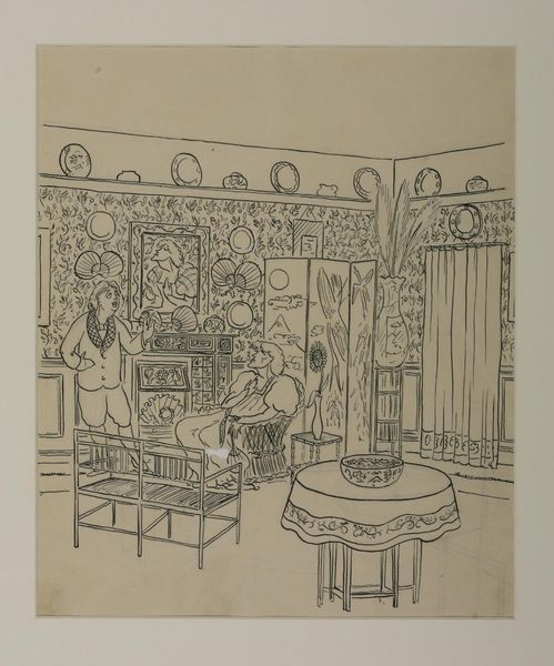 Elly Verstijnen created this ink drawing titled "Baby in een wieg in een woonkamer," or "Baby in a crib in a living room," though the exact date remains unknown. Verstijnen's intimate portrayal of domestic life provides a window into the social fabric of her time. The detailed rendering of the nursery, with its patterned crib and playful toys, reflects the growing emphasis on childhood and domesticity in early 20th-century Western culture. Yet, this seemingly innocent scene invites us to consider the unseen labor and social structures that uphold such domestic spaces. How do gender roles influence the composition of the space? What is the relationship between the children and the space they inhabit? The doll hanging next to the crib might elicit diverse reactions—comfort, curiosity, or even unease. It serves as a powerful reminder of the complex emotions that can be evoked by even the simplest of domestic scenes. This drawing, though modest in scale, offers a nuanced exploration of the personal and societal dimensions of early childhood.
