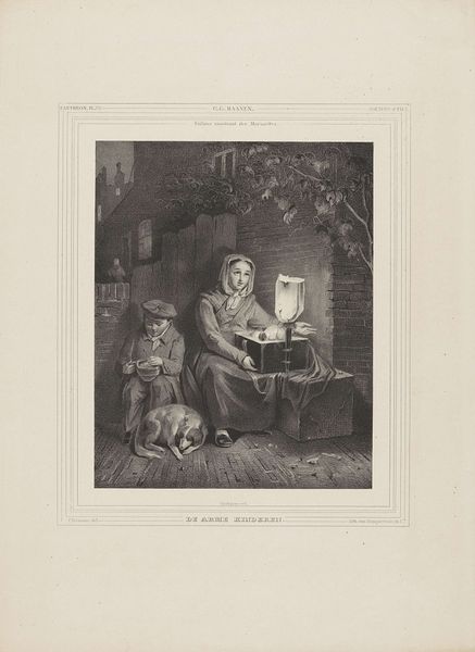 Editor: Here we have Stanley Anderson's "Parky and Vurty, Prague," an etching. The woman seems so self-contained, almost stoic, amidst her wares. What can you tell me about the context of this work? Curator: Well, considering Anderson's background, it's important to view this through the lens of social realism popular at the time. This isn't just a quaint street scene; it's a commentary on the working class and their place within the urban landscape. Do you notice how the wine sign in the background contrasts with the woman’s humble trade? Editor: I see what you mean. It’s like a visual juxtaposition of different social strata within Prague. Curator: Precisely. Anderson often used his art to highlight these social disparities, inviting viewers to reflect on the everyday realities of marginalized communities. It certainly sheds light on the public role of art. Editor: This makes me appreciate the work on a much deeper level. Thank you! Curator: My pleasure. It's these layers of meaning that make art so compelling.