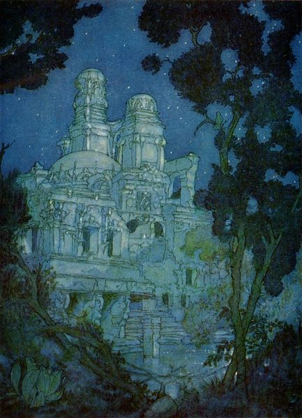 Léon Bakst conjured Elisium with paint, crafting a world in various shades of green and blue. It looks to me like this was about the process of artmaking itself. The density of the dark greens and blues evoke a serene and dreamlike quality. Look at the way the paint almost vibrates with energy, especially where the dark, towering trees meet the lighter, ethereal figures in the center. There is a real sense of depth created by layering the colours. See how the artist uses thin washes of colour to build up the forms, like in the foreground where the figures are laying, giving it this translucent quality. Bakst worked as a stage designer, and you can see how that practice translates to this piece. The image is structured like a stage set and the figures are frozen, like actors waiting for the curtain to rise. Elisium reminds me of Odilon Redon, particularly in the way it uses colour to create atmosphere and feeling. Like Redon, Bakst invites us to step into a world that exists somewhere between waking and dreaming.