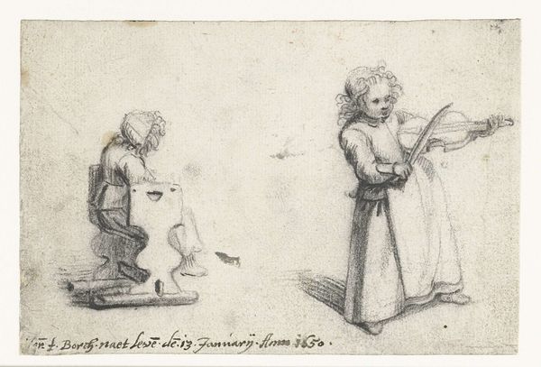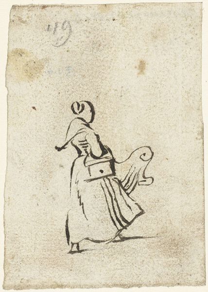 This small drawing, made by Harmen ter Borch in the latter half of the 17th century, offers a glimpse into the everyday lives of women in that era. Executed in delicate pen and brown ink, with a subtle grey wash on paper, the artist sketched two figures engaged in seemingly mundane tasks: one carrying a rack, possibly for drying laundry, and the other with a basket. The artist’s choice of medium is crucial; the immediacy of ink on paper lends the scene a sense of informality, as if captured in a fleeting moment. These were the tools of study, of observation. The seemingly effortless lines belie the skill required to convey form and movement with such economy. Consider the social context: laundry and basket-work were typically women’s work. Ter Borch elevates these ordinary tasks, transforming them into a subject worthy of artistic attention. The drawing reminds us that art can be found not only in grand narratives but also in the quiet dignity of daily life. It challenges any strict separation between the fine arts and the crafts of everyday existence.