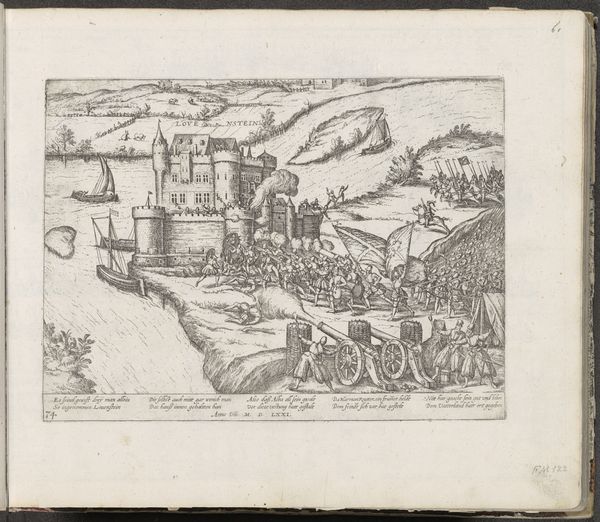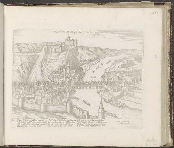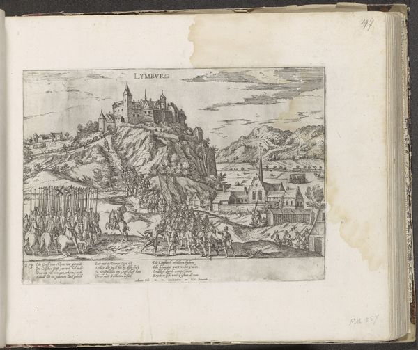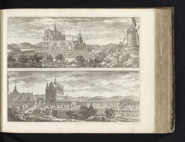 Editor: So this is "Gezicht op slot Läckö, vanuit het zuiden", or "View of Läckö Castle from the South," made in 1693 by Willem Swidde. It's an engraving. It feels almost…theatrical, like a stage set for a historical drama. What strikes you about this piece? Curator: Well, beyond the immediate aesthetic impression, let's consider what a carefully rendered landscape like this signified in 17th-century Sweden. It's not just a pretty picture; it’s a statement of power. Editor: How so? Curator: Think about the function of landscape art at the time. Depictions of grand estates served to legitimize aristocratic land ownership and to assert control over resources and people. Willem Swidde, through the lens of class and societal status, participated in reinforcing existing hierarchical structures. The castle dominates the composition. What might that say about how Swidde wants the viewer to understand power in this context? Editor: I hadn’t thought about it like that. I guess it highlights how the castle literally lords over the landscape and, by extension, its inhabitants. Curator: Exactly. And consider who this print would have been made for. It's a tool, a visual justification for the status quo. The "theatrical" quality you noted is, in a sense, performance of dominance. What stories might those inhabitants tell, if given the chance? Editor: It's fascinating to see how much history is embedded in this seemingly simple image. I definitely have a different perspective now! Curator: Indeed. Art gives us not only something to see, but also many things to question.