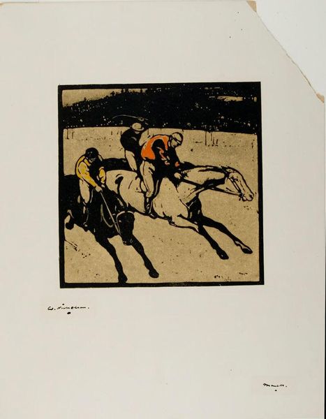 Editor: So, here we have Josef Herman’s "Scene on the Shore." It's simple, almost stark, but I find it oddly powerful. What strikes you most about it? Curator: It's a dance of necessity, isn't it? See how Herman simplifies the figures? Almost reduces them to their essential roles in this seaside tableau. The earthy tones evoke a certain grit, a reality of labor. Does it make you wonder about their story? Editor: Absolutely! I'm curious about the relationship between the figures and the donkey. It looks like they are taking care of the animal. Curator: Exactly! There’s a quiet dignity in that care, that connection to the animal. I think Herman captures something essential about the human condition here. Makes you think, doesn't it? Editor: It does! Thanks for pointing that out, I see it differently now.
