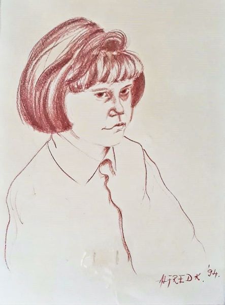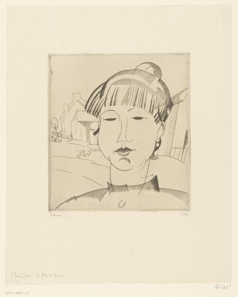 Editor: Here we have Eric Gill's 'Miss R. Rothenstein,' a delicate line drawing. The precision is striking, but there's also a coolness to it, almost detached. How do you interpret this work? Curator: It’s a curious dance between the objective and the personal, isn't it? Gill, a master craftsman, meticulously captures her likeness, yet there's this intriguing sense of...reserve. I wonder, does this reflect Gill's own internal world, perhaps? Editor: That's interesting. So you think his personality impacted his style? Curator: Absolutely. Artists don't exist in a vacuum. And maybe she's just a very serious person! Anyway, art is always a conversation, right? Between artist, subject, and, of course, us. Editor: A good point! I'll definitely think about this one differently now.