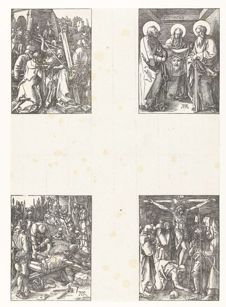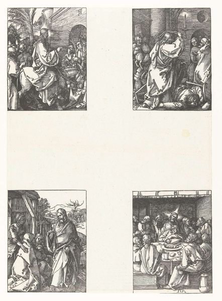 Albrecht Dürer made this woodcut, depicting four scenes from the Passion of Christ, in Germany, at the turn of the sixteenth century. These images are heavy with political and religious meaning. Consider the structures that held this meaning in place. Religious institutions like the church were central to social life, and political power was often justified in religious terms. Dürer’s work reflects a growing interest in the individual and the human, a move that would ultimately challenge institutional control. Woodcuts like these would have been relatively affordable and widely circulated, helping to spread not only religious stories, but also new ideas about the relationship between humanity and authority. As historians, we might look to religious texts, political pamphlets, and economic data to understand the context in which this woodcut was made and the social and institutional forces that shaped its production and reception.