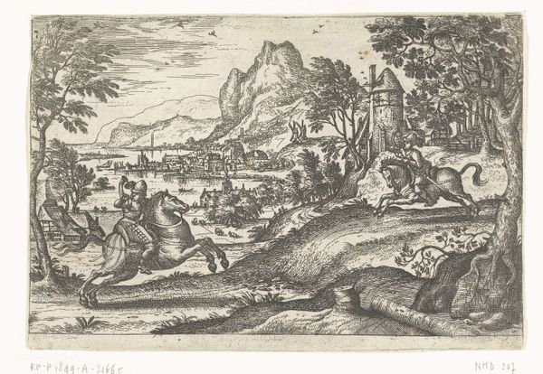 This print, titled ‘Pyramus and Thisbe,’ depicts a tragic scene from Ovid's Metamorphoses, created by an anonymous artist. The tale, resonating through centuries, presents the ill-fated love of Pyramus and Thisbe, their forbidden romance ending in a double suicide due to a tragic misunderstanding. The setting is a landscape that feels both idyllic and fraught with danger, mirroring the lovers' intertwined fate. Thisbe discovers Pyramus's bloodied cloak and believes him to be dead, and so, she takes her own life, a choice then mirrored by her lover who, finding her body, ends his own life. What does it mean for a woman to take control of her own narrative, even if through death? This print serves as a poignant exploration of love, sacrifice, and the tragic consequences of miscommunication, inviting reflection on the societal pressures that dictate our choices and shape our destinies.