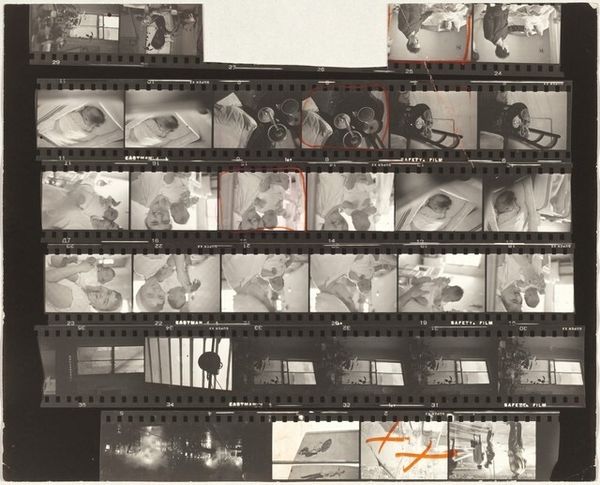 Robert Frank made this contact sheet, "Sue Lyons, 'Lolita' 1," with gelatin silver print on paper, at an unknown date. It feels raw and immediate, doesn't it? Like a painter who leaves the underpainting visible. The texture here is all about the grain of the film, that gritty quality that makes you feel like you could almost touch it. The stark black and white intensifies the contrast, highlighting the subjects, Sue Lyons and the American flag. Look at how the flag appears, fractured across multiple frames, almost like a puzzle. It's this fragmented view of Americana that feels particularly striking. Frank’s work reminds me a little of Walker Evans, in the way he captures the everyday. But there’s a restlessness here, an anxiety, that's pure Frank.