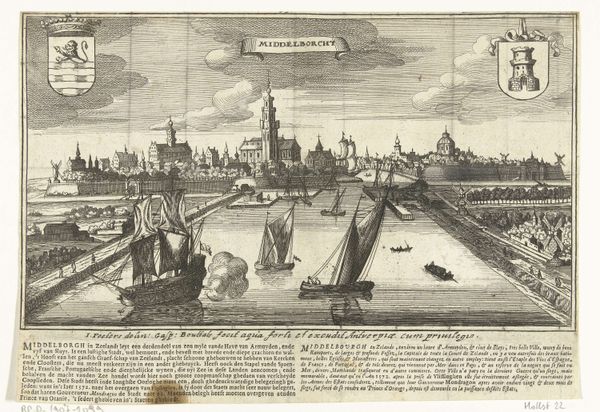 This print of ‘Gezicht op Tholen’ was made by Gaspar Bouttats sometime in the late 17th century, using an engraving technique. The image is made by cutting lines into a metal plate, inking the plate, and then using a press to transfer the ink onto paper. This print is more than just a picture, it's a product of skilled labor and specialized knowledge. Consider the engraver, meticulously cutting lines into the metal, the printer operating the press, and the merchant distributing the final product. Each step involves human effort and contributes to the image's value. Prints like these were essential for spreading information and shaping perceptions of the world. While seemingly simple, it reflects a complex web of economic, social, and artistic relationships. It shows how even seemingly straightforward images are deeply embedded in their historical and cultural context.