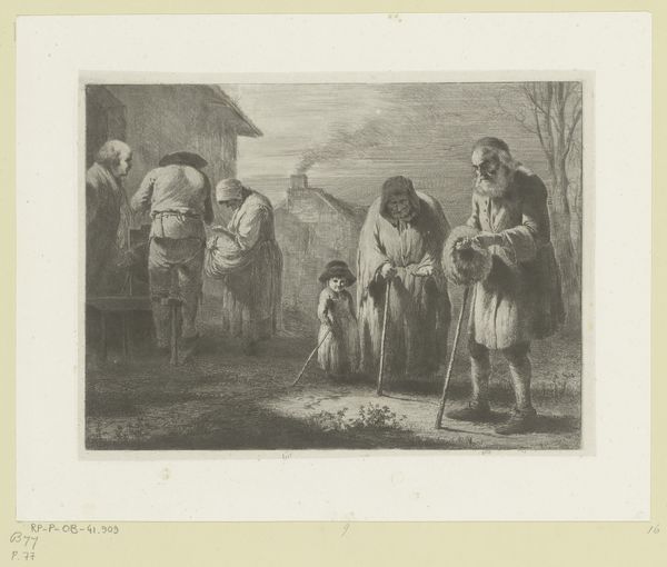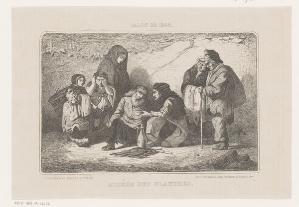 This lithograph, Tsiganes Mountain Dwelling, was created by Auguste Raffet in France. The scene depicts a group of Roma people inside what appears to be a cave dwelling. The image presents a romanticized view of Roma life, fitting within a broader European fascination with the exotic "other." During the 19th century, increased state efforts to define national identities meant groups like the Roma were viewed with suspicion and subject to intense scrutiny. Raffet’s decision to depict them in a ‘natural’ mountain setting speaks to this narrative of the Roma as a people somehow outside of modern society. The print aestheticizes poverty and positions the Roma as picturesque subjects for consumption by a settled, urban audience. The image may well have served to reinforce existing prejudices. To better understand this print, one might consult historical archives for accounts of Roma communities in 19th-century France and how they were perceived by the dominant culture. Analyzing the visual codes and stereotypes present here reveals the complex social dynamics at play. Ultimately, this artwork reminds us that the meaning of art is always shaped by its social and institutional context.