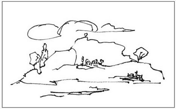 Curator: Drawn in 1971, this ink drawing by Martiros Sarian is titled "Ararat in Clouds". Editor: It's remarkably sparse, almost skeletal. Despite that, there's something profoundly evocative about its simplicity; it hints at vastness. Curator: Absolutely. For Sarian, Ararat wasn't just a mountain, it was a potent symbol of Armenian identity, of resilience in the face of historical trauma. Its presence, or even its suggestion through cloud formations, speaks volumes about cultural memory. Editor: And the geometric lines, stark against the blank page, carry such weight. The mountain becomes an almost mythical form, its cultural importance outweighing any attempt at naturalistic depiction. It also reminds me of similar mountains of art such as Fujiyama or Sainte-Victoire. Curator: It’s impossible to divorce the image from its historical context. This was drawn during the Soviet era, when open expressions of Armenian nationalism were suppressed. The image of Ararat becomes a subtle act of resistance, a reminder of a shared heritage. Editor: The use of line art, devoid of colour, also creates an interesting dialogue with loss and endurance, the contours are there. And yet what's inside the image needs to be supplied by collective history and remembering. Curator: Yes, think about the symbolic loading of this cultural and historical signifier! What do those spare strokes, rendered with ink on paper, really *mean* to Armenians inside and outside the Soviet bloc at that time? This geometric form touches something so deeply interwoven with national consciousness. Editor: You're right; in its simplicity lies its strength. The symbolic importance transcends the physical depiction. And perhaps that starkness serves to preserve the image's emotional resonance throughout its changing history? Curator: It’s a powerful reminder that even in the face of adversity, cultural identity can endure, subtly asserted through art. Editor: Ultimately, "Ararat in Clouds" embodies a dialogue between absence and presence, echoing through Armenian identity and a collective cultural heritage.