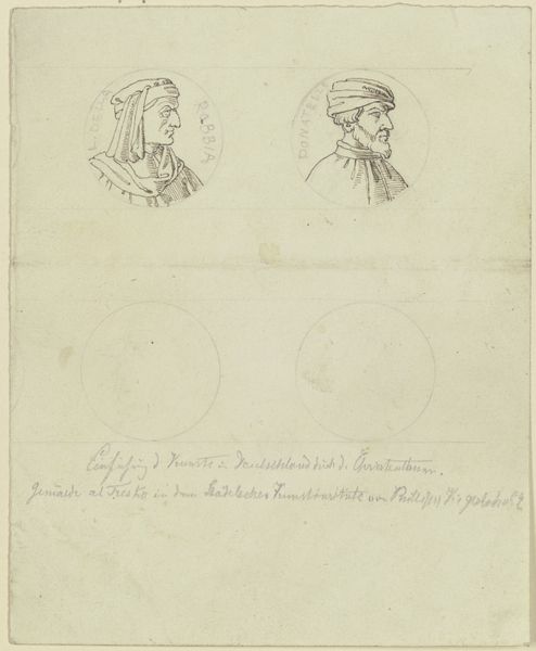 Eugen Eduard Schäffer created this drawing of head studies to frame frescos at the Städelsches Kunstinstitut. The portraits, rendered in profile, evoke the classical tradition of portraiture found in ancient coins and cameos. Consider Nicola Pisano: his image, captured here, reminds us of similar profiles found on Roman coins. This conscious revival of classical forms speaks to a broader cultural phenomenon, the *Antike*, which flourished during the Renaissance. It mirrors a longing for the order and harmony of the ancient world, where the profile was a symbol of power, nobility, and idealized beauty. The practice of immortalizing figures in profile has continued through time, appearing in the Renaissance, where it symbolized the revival of classical values, and even resurfaces in modern society. Each revival is a psychological echo, resonating with collective memories of greatness. This echoes the cyclical nature of history, where forms and symbols never truly disappear but are constantly reborn.