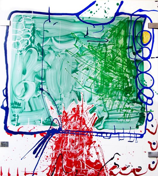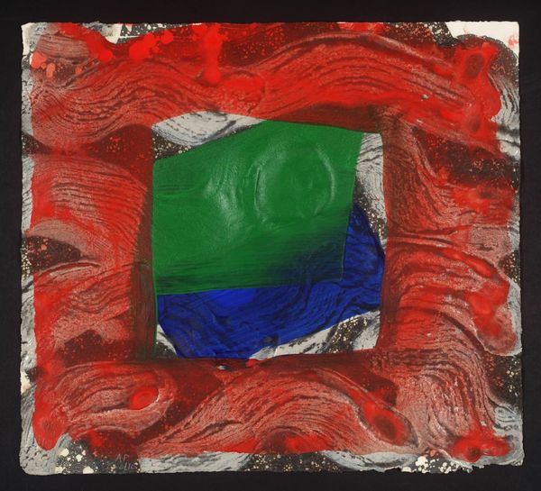 Curator: Welcome. Before us is Howard Hodgkin's "Strictly Personal" from 2001, rendered with acrylic paint. Editor: Striking. My initial impression is of raw energy, a landscape viewed through intensely subjective emotion. The broad swathes of color feel almost violently applied. Curator: Indeed. Hodgkin’s application of impasto exemplifies his expressionistic leanings. The layered acrylics, thick and richly colored, betray the act of painting. The artist seems less concerned with representation and more involved in presenting a physical record of gesture. Editor: And gesture is precisely where I see Hodgkin’s commentary on display: What were the artistic and personal contexts surrounding Hodgkin when this piece was realized? Was Hodgkin perhaps responding to trends within abstract expressionism by intensifying or inverting conventions from prior generations? Curator: Interesting perspective, though Hodgkin resisted the label of Abstract Expressionist, positioning himself differently from the New York School, with the likes of Pollock and Rothko. However, we do observe similar attention to materiality and gesture, in Hodgkin’s layering of colors on the surface, with the top layers leaving uncovered glints of the underpainting, giving us that glimpse to its chromatic origins. Editor: I read that uncovered paint as a nod toward its creation. The broad use of these colors recalls the legacy of mid-century Abstraction in American society. However, by the dawn of the new millenium when Hodgkin created "Strictly Personal", what message was Hodgkin sending regarding the status of “personal expression” and modern societies? Curator: In many ways, Hodgkin returned the focus to painting's intrinsic values as an activity divorced from social content. "Strictly Personal," it appears that his abstraction pushes further to achieve pure experience rather than explicit representation, almost a post-formalist strategy after postmodernism. Editor: In this sense, perhaps Hodgkin’s "Strictly Personal" comments on modern individuality in relationship with an unmitigated commercial world that seemed ubiquitous in society by the turn of the millenium. By resisting social messaging in favor of abstraction, does this become his most trenchant observation? Curator: An intriguing suggestion! It seems clear that Hodgkin engages the viewer at an intuitive level. It demands close viewing for any sort of interpretation, but repays with both visceral intensity and quiet intimacy. Editor: And regardless of those personal narratives, as always the value is found in both that art experience and that art object.