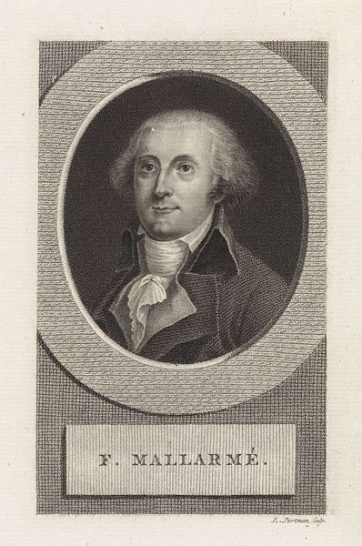 Editor: Here we have Hendrik Roosing's "Portret van Jérôme Pétion de Villeneuve," an engraving from 1792, currently housed at the Rijksmuseum. It has a rather stern, almost clinical feel to it. What do you see in this piece? Curator: Ah, Pétion! He looks every bit the serious revolutionary, doesn’t he? To me, this isn't just a portrait; it's a statement, a carefully constructed image meant to convey virtue and intellect, very much in keeping with Neoclassical ideals. See how Roosing, the artist, employs precise lines and controlled shading. It's all about clarity and rationality. But doesn't he also look like he's about to launch into a fiery speech? Editor: He does seem very proper! I notice that it looks very precise and careful. Why do you think that is? Curator: Remember the French Revolution! This was a time of intense political fervor, and engravings like these were the mass media of the day. They spread ideas and promoted figures like Pétion, mayor of Paris, a leader of the Revolution. The style is purposeful. Do you get a sense of how different it is to, say, a flamboyant Rococo painting? Editor: Yes, it’s much more restrained. It makes sense that it has something to do with the Revolution and political events from that period. Curator: Precisely. This isn't just art; it’s propaganda, skillfully rendered. Think about how an image like this might have been received by people during that period. What sort of feeling it would generate in them. Editor: It’s incredible to consider the historical context woven into this seemingly simple portrait. I had no idea! Thanks! Curator: My pleasure. These portraits help us connect to these crucial turning points in history.