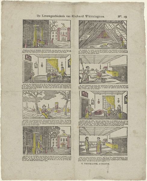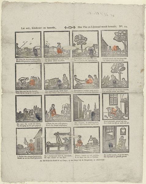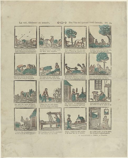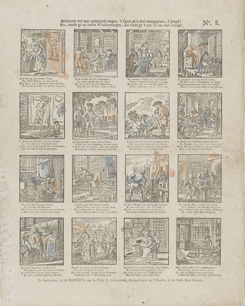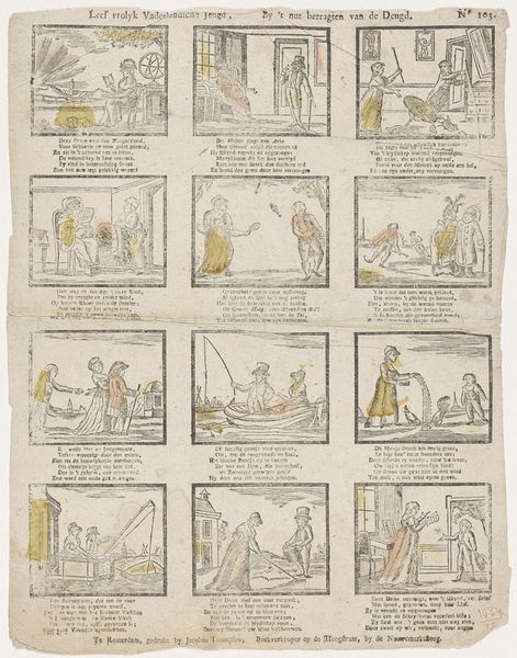 This color etching was made by Christiaan Jacob Schuyling, likely in the Netherlands at the beginning of the 19th century. The series of images depict scenes of children behaving virtuously. The title translates to "Oh how noble is the child who is inclined to virtues!" It's a moralizing message, meant to educate and shape children's behavior. Looking closer, we see visual codes of the time: modest clothing, domestic settings, and children helping each other and their elders. Institutions like schools and the church played a significant role in shaping social values at this time. Books, prints, and other media were produced to instill the values of hard work, obedience, and piety. It is worth asking if this print is challenging social norms or reinforcing them? Is it aimed at wealthy children, or does it address the working class? An art historian might research the publishing industry of the time, popular literature for children, and the role of the church in education to understand better the social context of this print.