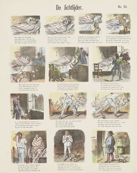 This print by De Ruyter & Meijer, titled "Het spelen van jong en oud," captures various forms of recreation shared across generations. Dominating the composition, we see depictions of children and adults alike, engaged in simple games and pastimes—scenes of winter games with a snowman, playing marbles, dancing, and indoor table games. Consider the snowman: a figure built by the collective, adorned with discarded objects, almost like a primitive idol. We see echoes of this impulse across cultures—the creation of effigies and temporary monuments imbued with communal hopes and fears. Think of carnival figures, paraded and then ritually destroyed, carrying away the community’s sins. Such creations tap into deep-seated human needs: to create, to play, to transform the mundane into something meaningful. This image reminds us that the impulse to play and create is a timeless, cross-generational phenomenon.