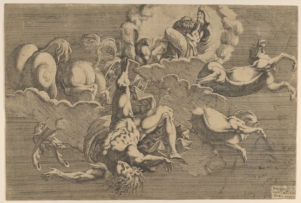 Curator: Gazing at this piece, I'm immediately struck by its ethereal quality, a dreamlike gathering rendered in muted tones. What's your first impression? Editor: You know, it reminds me of stepping into a fantastical, almost biblical garden. The soft palette and meticulous details evoke a sense of timeless wonder, as though a secret, quiet symphony is being played. Shall we delve into the specifics? Curator: With pleasure! This is a drawing titled "Orpheus Charming the Animals with his Music," attributed to Gerard ter Borch the Elder, dating back to somewhere between 1626 and 1661. Executed with pen and ink on paper, you can find this beauty residing here at the Rijksmuseum. Editor: Indeed, the interplay of line and space in this drawing is particularly fascinating. Look at the density of the cross-hatching used to define form and shadow versus the comparatively blank space that creates implied texture. I find Ter Borch's treatment of the natural world as pure structure rather compelling. The grouping of the animals appears somewhat contrived; tell me more about that. Curator: Contrived maybe, yet deliberate, I would add! Borch uses the figure of Orpheus to orchestrate a commentary on civilization versus nature. Here we have an embrace between humanity and the animal kingdom as Orpheus brings his talent to enchant all within earshot. We imagine the capacity for harmony as ever-present; it needs but to be realized. I am fascinated that this same theme is so pervasive across civilizations, suggesting a near-universal longing for peace and concord. Editor: That is astute. When thinking about how harmony becomes embodied visually here, it is achieved less through an atmospheric coherence than through geometric variation and surface articulation. The animals aren't naturally assembled so much as arranged according to artful principles. They form a taxonomical tableau of nature subdued by music and art. Curator: That makes me think of the possibility of seeing the image less as a portrayal and more of an invitation; as a challenge for a contemporary interpretation that bridges divides between nature and the world. Editor: So beautifully expressed. It offers us so much to ponder, doesn’t it? This is more than just seeing: It's about connecting with narratives across the ages, recognizing ourselves within a complex visual tapestry.