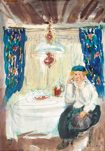 Carl Larsson created this watercolor painting, Ulf, capturing a moment of domestic intimacy. The composition is immediately striking: a young boy in a nightshirt dominates the foreground, his fair skin contrasting with the warm hues of the interior. Larsson’s focus on the structure of the domestic space draws the viewer's eye across a network of carefully arranged objects. The table, draped with a patterned cloth, acts as a plane that destabilizes traditional perspective. It challenges fixed meanings by presenting a space that is both functional and symbolic. The artist employs a restricted palette, yet he creates depth and texture through the layering of translucent washes. This functions not just aesthetically, but also as a lens through which we can examine the cultural codes embedded in representations of childhood and the home. The painting invites ongoing interpretation.