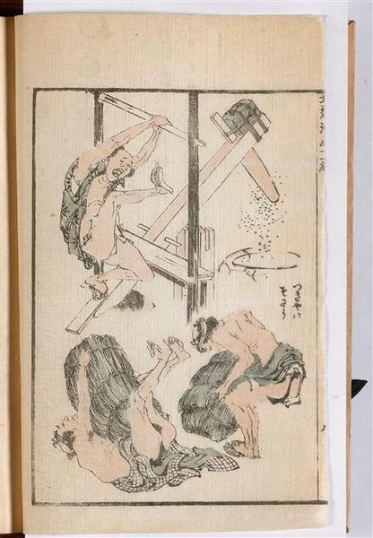Editor: This is volume two of Hokusai's *Illustrated Book of Filial Piety*. The delicate lines and monochrome palette create a sense of quietude, even though the scenes seem quite active. What strikes you most about its composition? Curator: Observe how Hokusai deftly employs line and form to convey narrative. The arrangement of figures, their postures and gestures, are not merely illustrative. Consider the visual rhythm created by the repetition of forms. Editor: I see what you mean. The lines create movement, guiding the eye through the story. Curator: Precisely. The interplay between positive and negative space enhances the overall visual dynamism and the implied narrative. Editor: It’s fascinating how much Hokusai achieves with such restraint. Curator: Indeed. The work exemplifies how visual elements alone can articulate profound narrative and emotional content. Editor: Thank you. I'll definitely look more at line quality and narrative.