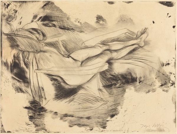 Jozef Israëls created "Saul," a drawing with a height of 53 cm and a width of 78.5 cm, held at the Rijksmuseum. The drawing presents us with an array of lines, predominantly gray and black, creating a scene of somber reflection. The material texture, defined by the strokes of the drawing, contributes to the emotional depth of the work. The composition is structured around the figure of Saul, whose form emerges from a flurry of linear marks. These lines, in their arrangement and density, suggest a figure burdened, perhaps lost in thought. The use of line here is not merely descriptive but expressive. It reflects a deeper engagement with the psychological state of the subject. The sketch challenges fixed meanings. Its somber tones, achieved through the careful application of lines, destabilize established meanings of power and leadership, suggesting a more vulnerable interpretation. This drawing compels us to consider how Israëls uses form to create meaning, reflecting broader artistic concerns.