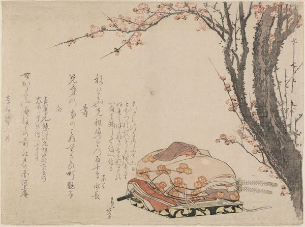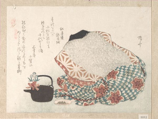 This color woodblock print showing a still life with koto was made in Japan by Hishikawa Sōri around the early 19th century. In this period, the Edo Shogunate imposed strict social hierarchies that dictated the lives of ordinary people. This print invites us to consider the intersection of artistic expression and social norms. The koto, a traditional Japanese stringed instrument, appears alongside a bonsai plant, a lacquered box and what seems to be an elegant kimono, each object carefully chosen to represent refined taste. The presence of calligraphy suggests the importance of literacy and poetry, key features of Japanese cultural life. But how did such cultural values relate to the wider context of Japanese society at the time? Archival sources, such as diaries, letters, and government records, can help us reconstruct the everyday lives of people who lived in Japan at the time, shedding light on how art reflected and shaped their world.