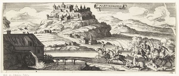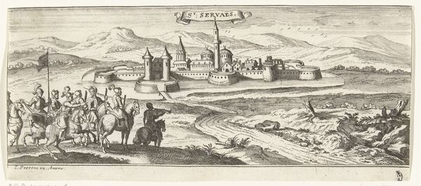 Editor: This engraving, “Gezicht op Smederevo” by Gaspar Bouttats, dates back to 1686. The detailed line work almost gives it a sense of… documentation. It feels like an attempt to meticulously record the city. How would you approach interpreting this piece? Curator: Well, let's think about the materiality. Engravings like this were reproduced. It shows us about labor of image production in the 17th century. What’s interesting is the choice to depict a cityscape like this, with such detail, inviting mass consumption of a particular image. Think about who could afford such prints. What were their needs? Editor: So, you’re suggesting it speaks to a burgeoning consumer culture? I hadn't considered that! Curator: Exactly! This wasn't about pure artistic expression, it was business. The city’s geography and key monuments becoming commodities. Editor: The social and economic context really shifts my understanding of it. Curator: Now look at the process: someone had to physically inscribe this on a metal plate. Consider the skill and time that took. Line by line! Editor: That’s incredible to think about. The labor is easy to overlook. The city, its image, all rendered through deliberate and strenuous production! Curator: And those lines are not arbitrary! Each contributing to the commodification and representation of the space. What have you learned? Editor: The layers of labor, and consumption intertwine with this cityscape, to show an emerging market for images itself. Thanks! Curator: Precisely, the image reflects its production and distribution more deeply than I initially thought!