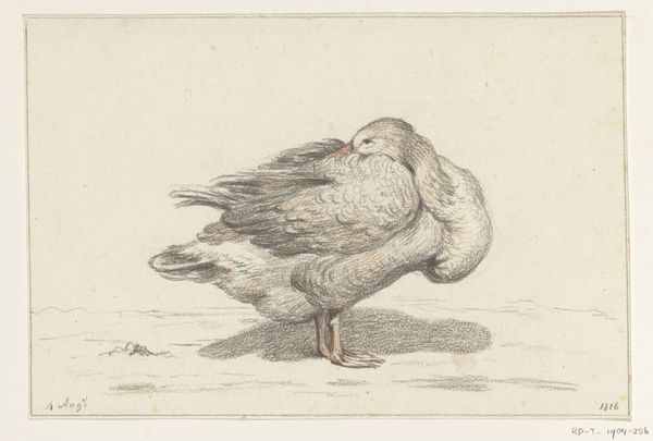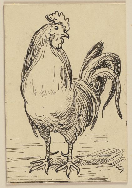 Curator: We're looking at "Drawing for the primer_ Duck" by Hans Thoma, created around 1905. It’s currently held at the Städel Museum. Editor: It's wonderfully whimsical. A simple ink drawing, but the character of that duck really shines through. Curator: Thoma was very engaged with German Romanticism. This drawing reflects that interest, and given its intended purpose, we must ask about the messages encoded within the work about that historical context for German children. How does the construction of national identity or ideas of pastoral life intersect here? Editor: For me, the interest is in how this image operates as an artistic process, how Thoma builds up form with these spare, assured lines. It looks like he’s using both pen and brush, observing and rendering in the same gesture. I wonder about the materiality of the drawing; the weight of the paper, the type of ink and its provenance. Curator: Considering its existence as an educational tool for children, the image of the duck becomes particularly intriguing when analyzed through contemporary pedagogical frameworks. The drawing becomes a site of contested meanings of how children are being shaped by this drawing. Editor: Yes, it raises questions around artistic labor, too. Was this a preliminary sketch? Or the finished product intended for mass production? And how does the means of its creation—the artist's hand, the printing press, its use by children—influence its reception and value? The material history embedded in a "simple" drawing. Curator: I think exploring it as part of an intersectional narrative is also vital. How might race, class, and gender intersect to affect its impact on its child audience? How could we create conversations that confront these historical contexts with the current audience’s perspectives and beliefs? Editor: Thinking about the present also allows one to acknowledge that our experience and understanding of a sketch such as this are intrinsically affected by modern reproductive methods and image distribution—are the lines now blurred even further between artwork and commercial object? Curator: Absolutely, exploring that tension is key. The image resonates today as much more than just a historical drawing, it reflects an entanglement of image-making, material practice, and cultural values, both past and present. Editor: Precisely. Thinking about its production, circulation, and continued resonance offers fascinating insights.