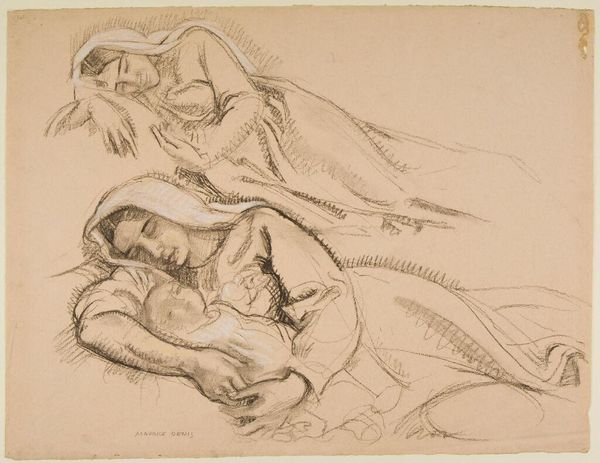 Editor: This is a pencil drawing titled "The Virgin and Child" by William Bouguereau, created around the 19th century. I’m struck by how softly the lines capture the folds of her garment. What's most interesting about this piece to you? Curator: For me, the material reality of this sketch highlights a very deliberate act of production. Consider the industrialization of pencil manufacture in the 19th century – the commodification of graphite and the machinery needed to bind it. This cheap, readily available medium allowed Bouguereau, known for his academic paintings, to democratize access to idealized beauty through preparatory sketches. Editor: That's interesting. I hadn’t really thought about the impact of pencil production itself. So, you're saying that by using this mass-produced material, even for a religious subject, Bouguereau was engaging with the changing social landscape? Curator: Precisely. Academic art of this period, while often portraying classical or religious themes, also navigated the emerging consumer culture. The drawing is not just a spiritual representation but evidence of specific labor processes, from graphite mining to artistic creation. Editor: It shifts my understanding from thinking about the finished artwork, to contemplating how industrial processes facilitated its making. Thanks! Curator: Exactly! Analyzing art through its material and the means of its production allows us to better understand how culture is consumed, perceived, and disseminated. It helps us to rethink the definition of “art”.