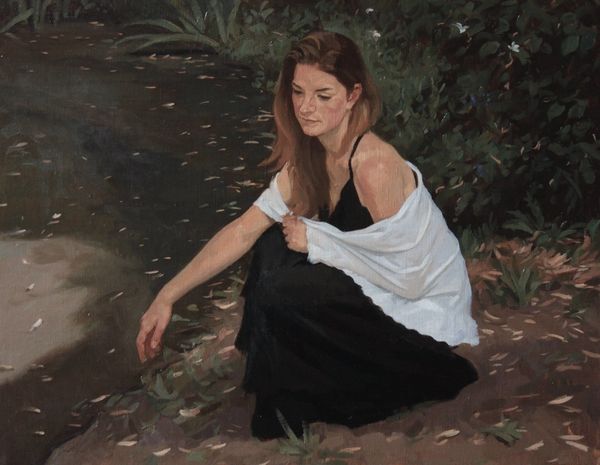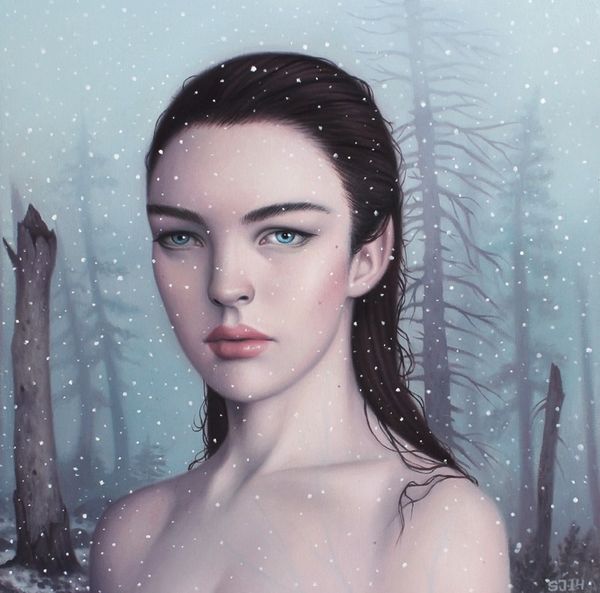Zoe Hawk's painting invites us into a silent drama set in a snow-laden forest. Here, a girl reclines, seemingly lost in thought, juxtaposed against the backdrop of an axe lodged into a tree stump. The axe, a symbol of human intervention and the taming of nature, echoes primal narratives found in folklore and ancient myths. Think of the tales where forests represent both refuge and danger, where woodcutters and the wilderness are in constant dialogue. This scene recalls similar images, from Ophelia’s watery demise to countless representations of female figures in nature, each carrying its own burden of symbolism. In Hawk’s composition, the girl's pose, reminiscent of classical depictions of slumbering nymphs, creates a tension between vulnerability and a deeper, perhaps unconscious, connection to the natural world. The snow, often seen as a symbol of purity, here blankets a scene imbued with latent anxieties, stirring our collective memory of similar archetypal encounters. These symbols resonate deeply, a testament to how visual motifs cycle through our cultural consciousness.