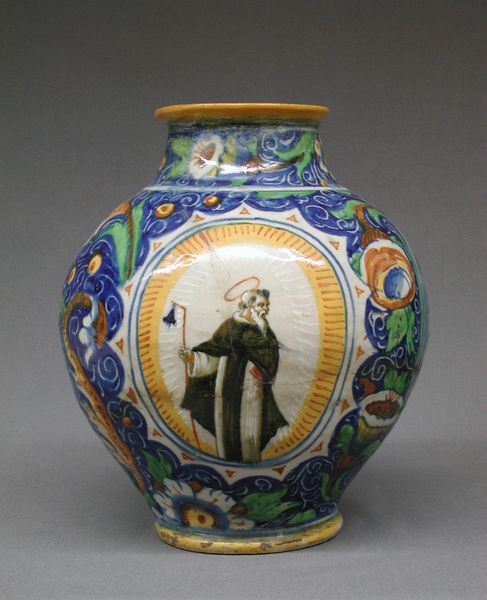 This is a Pharmacy jar, or Albarello, made of tin-glazed earthenware in France by Masséot Abaquesne in the mid-16th century. During this period, European art and culture saw the rise of Renaissance humanism. We can see this influence in the jar’s decoration: the classical-style portrait of a woman. She is depicted with a serene expression and adorned with a laurel wreath, symbolizing wisdom and status. It’s important to consider the cultural context: objects like this jar tell us stories about gender, class, and social status. While Renaissance art often celebrated the male form, this jar presents a female figure in a position of prominence. Was this an intentional statement about the role of women, or simply a reflection of the tastes of the time? What does it tell us about the people who owned and used it? These kinds of objects offer a glimpse into a society's values and beliefs, inviting us to reflect on the stories they tell and the questions they provoke.